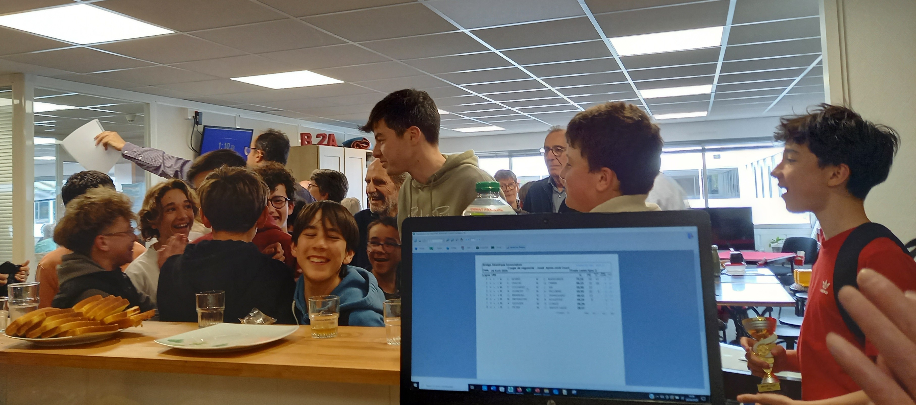 Des collégiens des Sicardières apprennent à jouer au bridge lors de la pause déjeuner. Ils participent aux rencontres scolaires régionales et nationales (Avrillé, Strasbourg, Lyon, Nantes, ...), et à partir de la deuxièmes année de bridge, ils peuvent participer au festival de Biarritz. |
